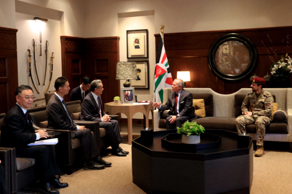 当地时间2025年12月15日,约旦国王阿卜杜拉二世在安曼会见中共中央政治局委员、外交部长王毅。